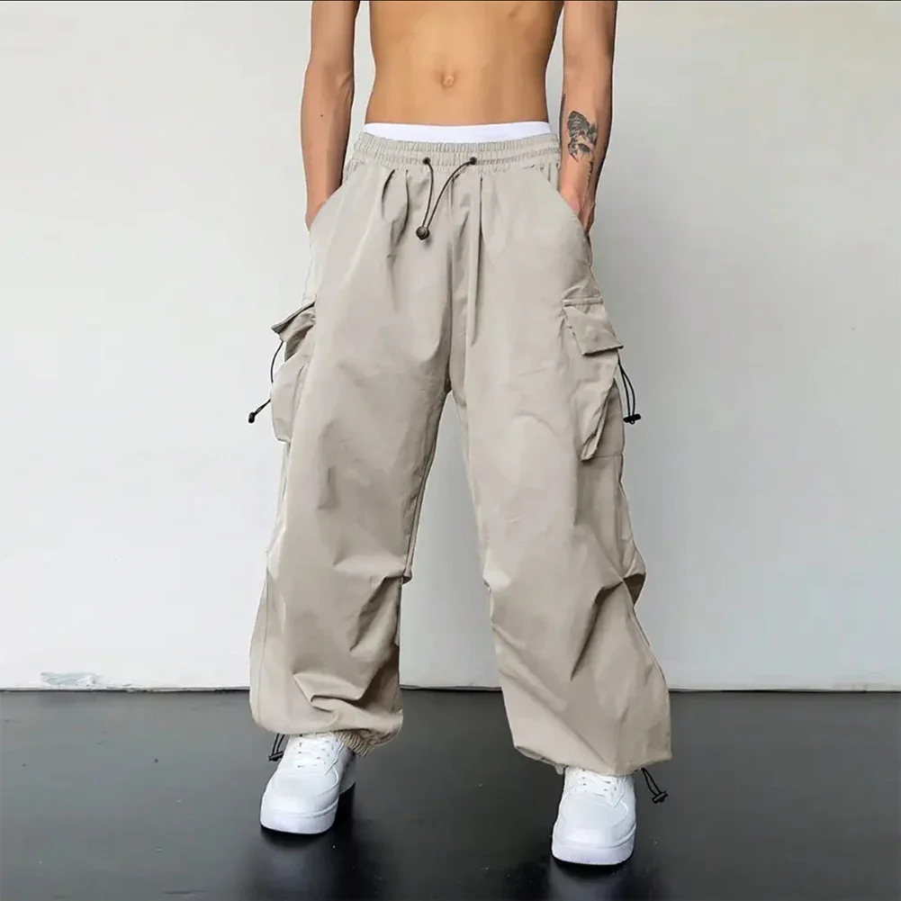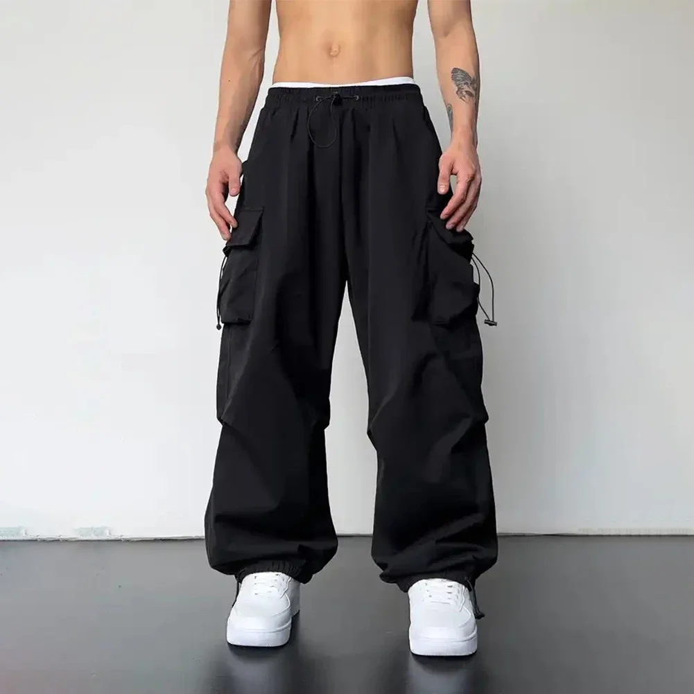Spring Summer Fashion Casual Pans For Men Streetwear Solid Color Cargo Pants Elastic Waist Wide Leg Harajuku Casual Men’s Jogger